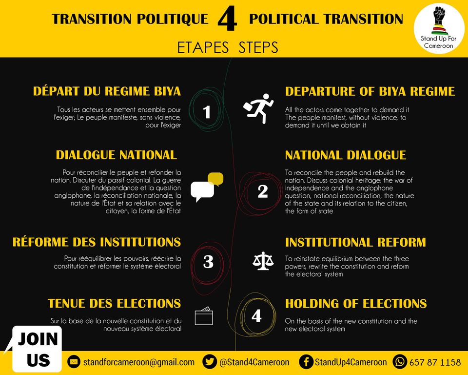 III – QUELLES SONT LES ETAPES DE LA TRANSITION POLITIQUE SELON STAND UP FOR CAMEROON ?