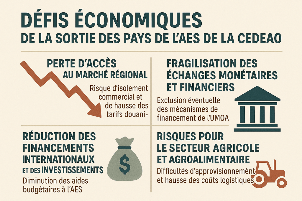 Les défis économiques et sociaux liés au retrait des pays de l’Alliance des États du Sahel (AES) de la CEDEAO se manifestent sur plusieurs niveaux :
