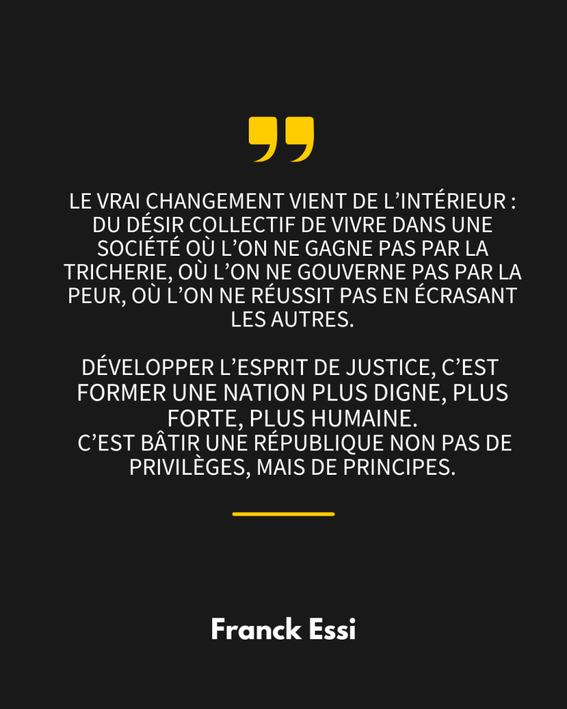 On ne bâtit pas une société juste seulement avec des lois. On la construit d’abord avec une culture de la justice, c’est-à-dire avec des femmes et des hommes profondément attachés à l’équité, à la vérité, au respect du droit, à la dignité humaine.