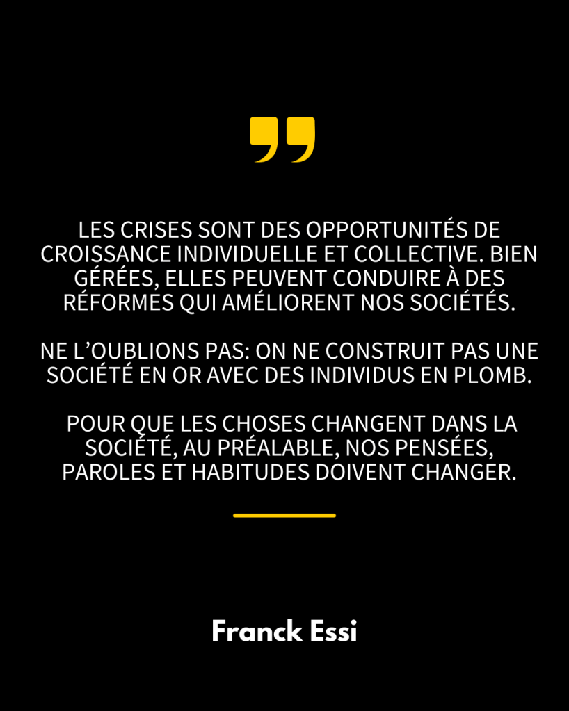 Les crises sont des opportunités de croissance individuelle et collective. Bien gérées, elles peuvent conduire à des réformes qui améliorent nos sociétés.