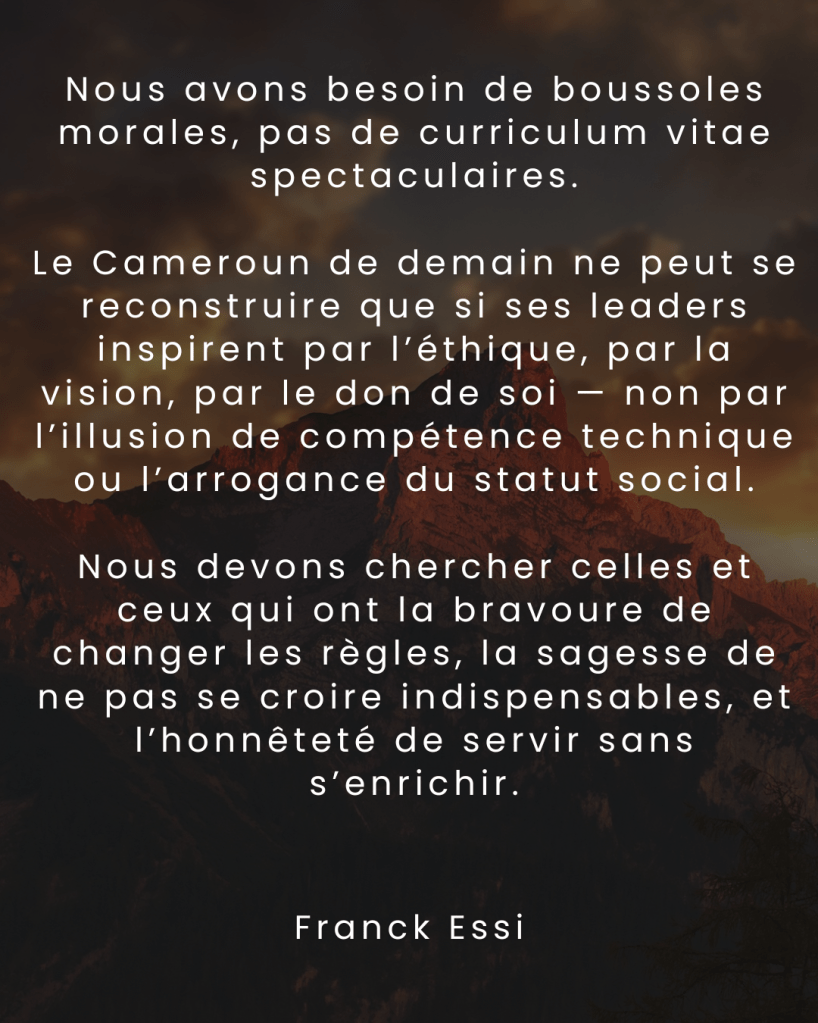 Le Cameroun de demain ne peut se reconstruire que si ses leaders inspirent par l’éthique, par la vision, par le don de soi — non par l’illusion de compétence technique ou l’arrogance du statut social.