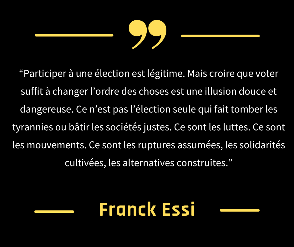 Ce n’est pas l’élection seule qui fait tomber les tyrannies ou bâtir les sociétés justes. Ce sont les luttes. Ce sont les mouvements. Ce sont les ruptures assumées, les solidarités cultivées, les alternatives construites.