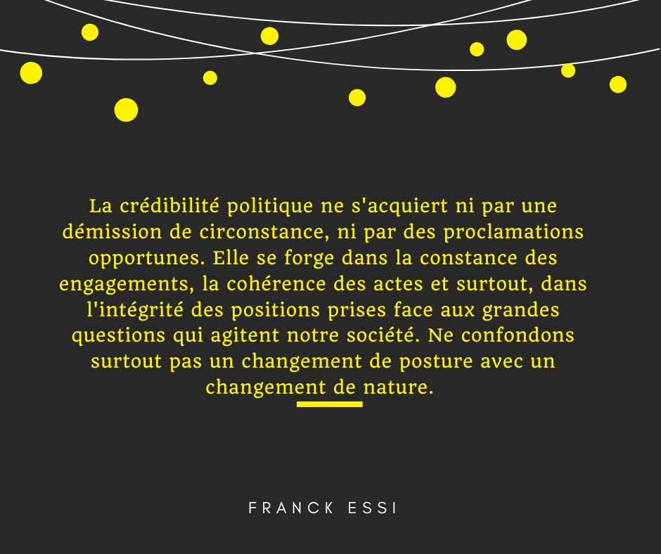 Mais il importe de rappeler clairement : la crédibilité politique ne s’acquiert ni par une démission de circonstance, ni par des proclamations opportunes. Elle se forge dans la constance des engagements, la cohérence des actes et surtout, dans l’intégrité des positions prises face aux grandes questions qui agitent notre société.