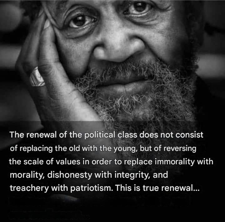 - An ethical transformation: Public action must be reoriented towards service, the common good, truth and justice. The notion of political and moral responsibility must be restored. The trivialisation of theft, lying, nepotism and abuse of power must no longer be tolerated or imitated.