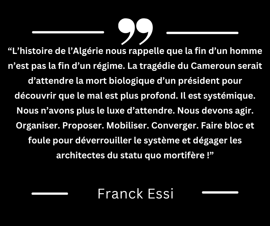 L’histoire de l’Algérie nous rappelle que la fin d’un homme n’est pas la fin d’un régime. La tragédie du Cameroun serait d’attendre la mort biologique d’un président pour découvrir que le mal est plus profond. Il est systémique.