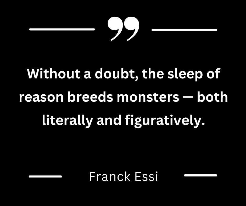 The sleep of reason breeds monsters. These monsters can be despotic leaders or socio-political disasters such as wars.