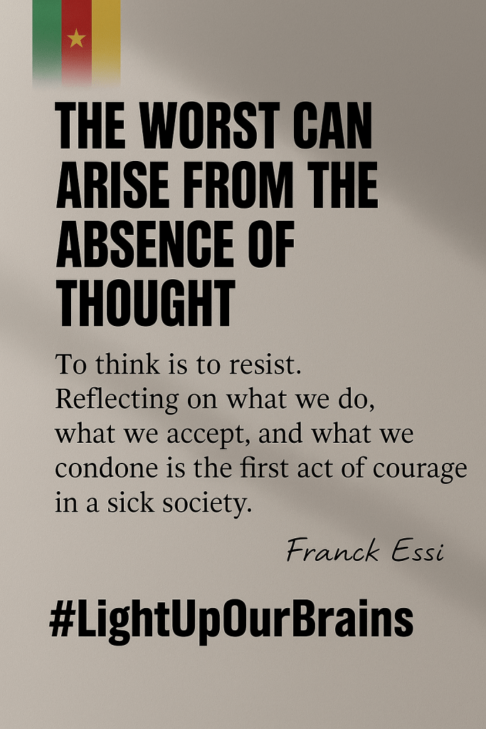 Arendt does not give us an excuse. She gives us a warning. It is not Eichmann she wants to understand. It is us. She wants to remind us that the worst can arise from a lack of thought. That to think is to resist. That reflecting on what we do, what we accept, what we condone, is the first act of courage in a sick society.