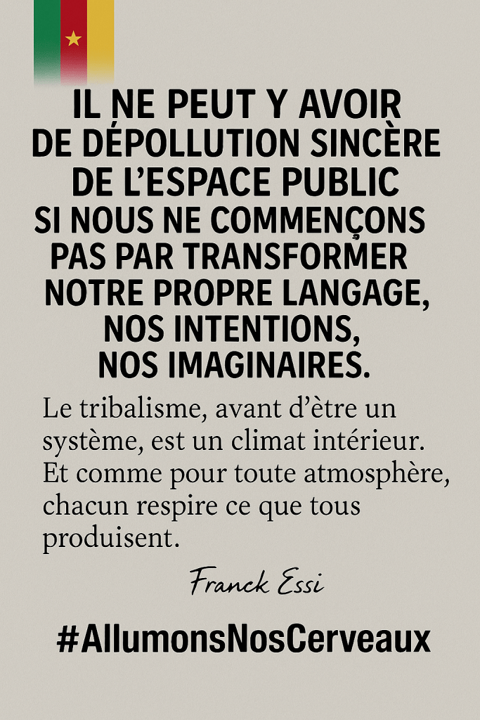 Le Cameroun ne guérira pas du tribalisme par des lois seules, ni par des discours incantatoires. Il guérira lorsque chaque citoyen fera de cette lutte une affaire personnelle. Un chantier éthique. Un exercice spirituel. Une exigence démocratique.