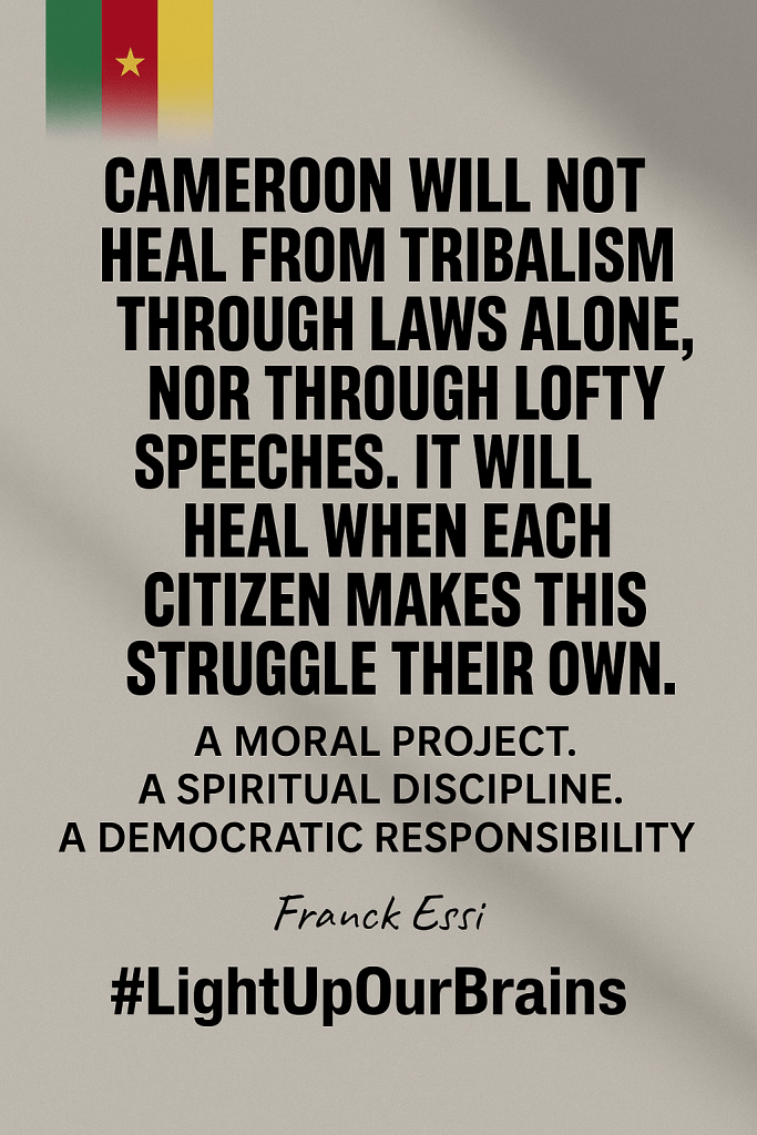 Cameroon will not heal from tribalism through laws alone, nor through lofty speeches. It will heal when each citizen makes this struggle their own. A moral project. A spiritual discipline. A democratic responsibility.