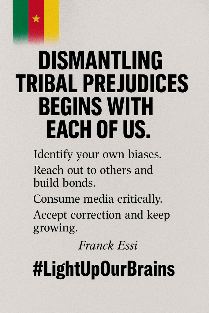 In Cameroon, as in many African countries, these prejudices are sedimented layers of partial narratives, collective traumas, unresolved injustices, and deliberate political manipulations. Tribalism is not primarily hatred of the Other—it is ignorance of their complexity. It is intellectual laziness that reduces individuals to where they come from. It is the forgetting of our shared humanity.