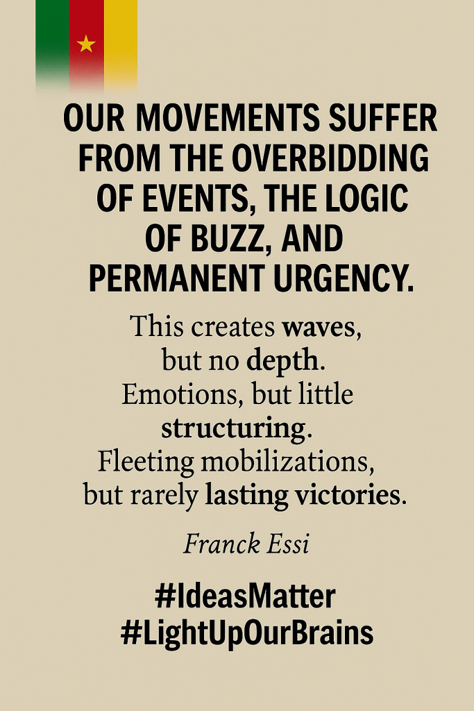 Cameroonian activism abounds with sharp analyses of the system, yet they are rarely transformed into roadmaps, lasting alliances, or operational plans. This sterile thinking ultimately discourages even the most committed minds.