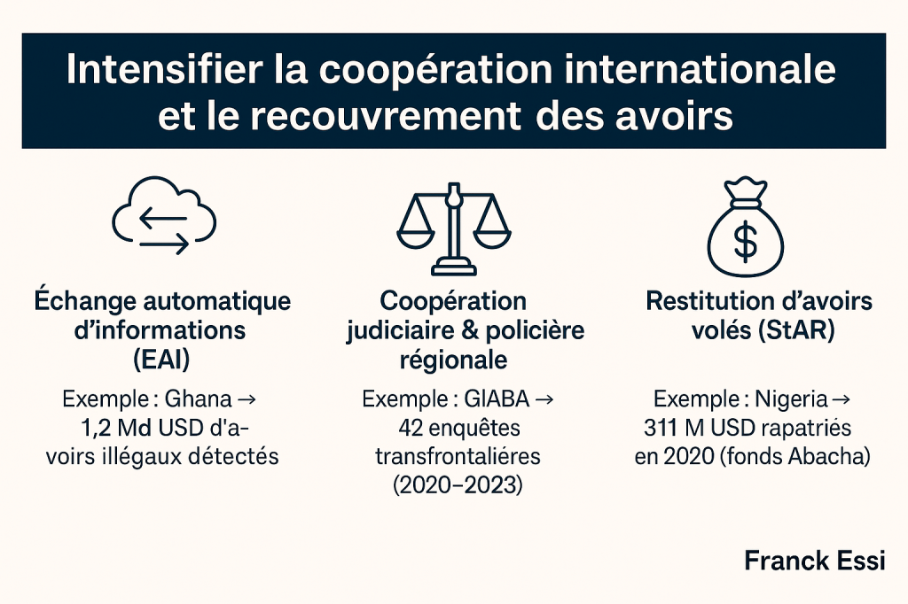 La coopération internationale offre donc un cadre indispensable pour contrer l’exfiltration des capitaux et restaurer la souveraineté économique des États africains.