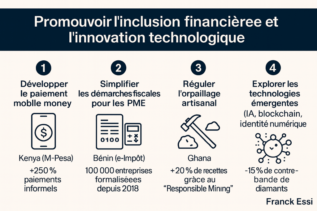 L’inclusion financière et la technologie constituent donc un double levier : élargir la base fiscale tout en renforçant la surveillance des flux.
