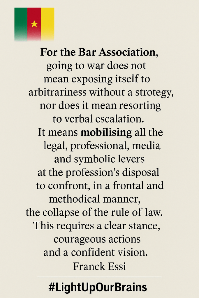 In this context, one key player in the judicial system can no longer hide behind a posture of cautious abstention or institutional reserve: the Cameroon Bar Association. For the silence of those who are the guarantors of the defence has, at this stage, become a professional, ethical, patriotic and historical failing.