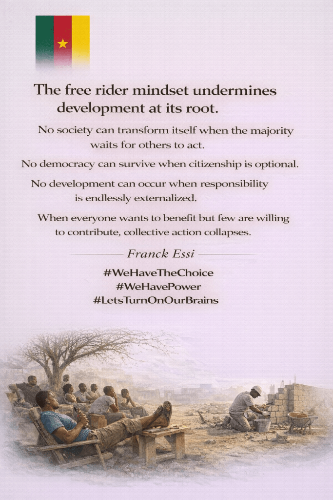Escaping the free rider mentality does not mean denying hardship or ignoring risk. It means accepting a demanding truth: there is no collective destination without individual contribution.