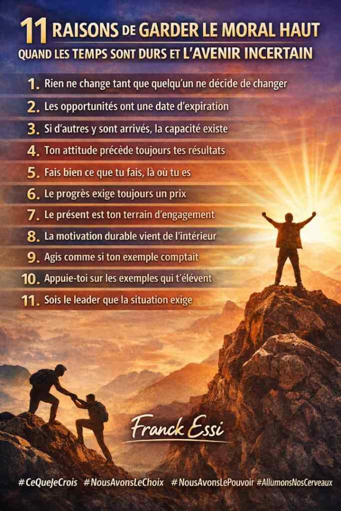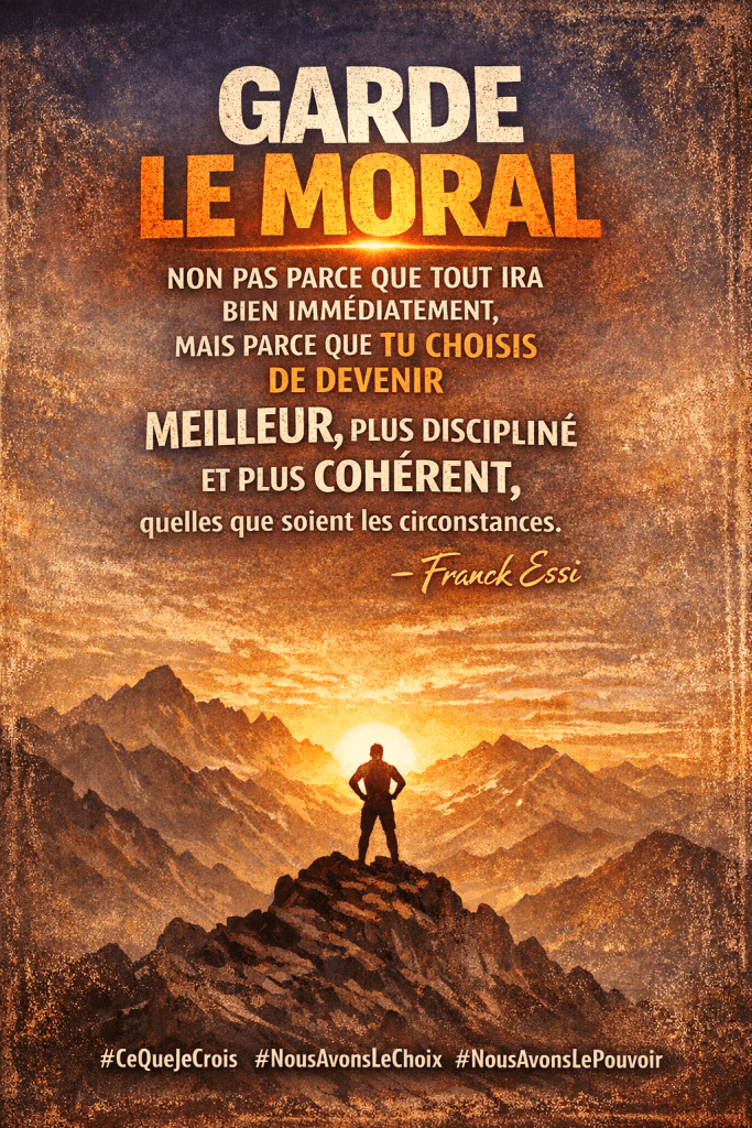 Garde le moral non pas parce que tout ira bien immédiatement, mais parce que tu choisis de devenir meilleur, plus discipliné et plus cohérent, quelles que soient les circonstances.