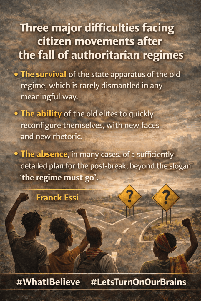 The great waves of transition in Africa have dispelled an illusion: that rupture alone is enough to produce democracy. Experience shows that the real challenge lies in the aftermath of the rupture, in the ability to build a more just, stable and legitimate political order.