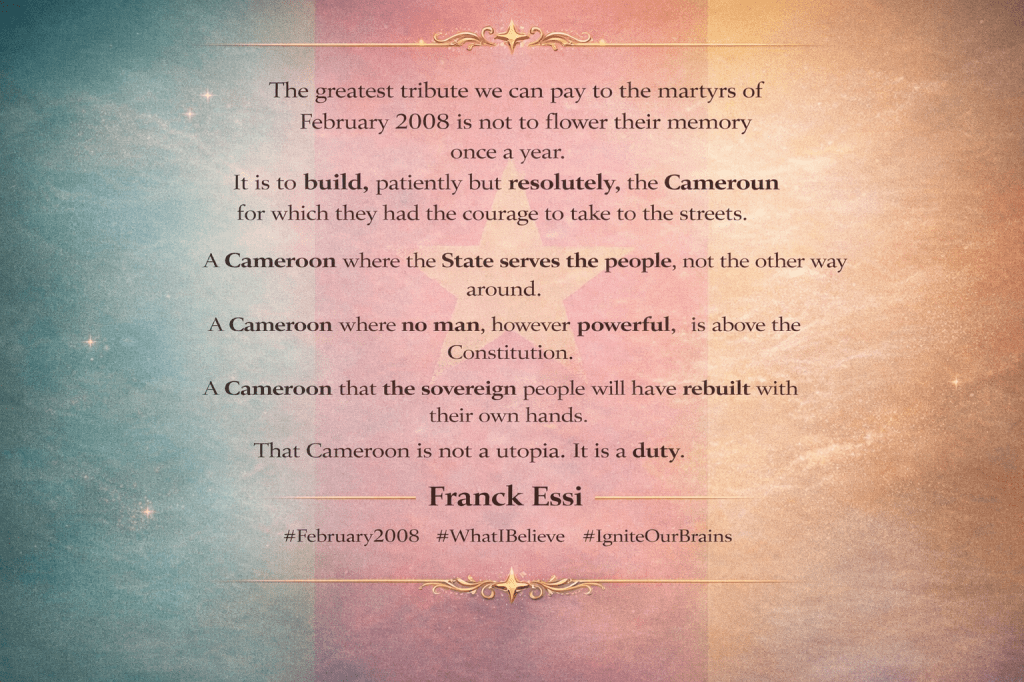 The best way to honour the martyrs of February 2008 is not to remember them once a year; it is to build, step by step, the Cameroon they had the courage to imagine.