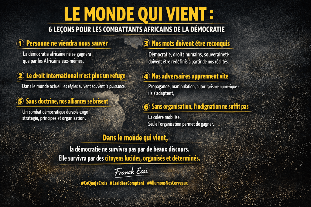 Pour nous, combattants africains de la démocratie et de la bonne gouvernance, ce basculement n’est pas un arrière-plan lointain. C’est le terrain réel sur lequel nos combats vont désormais se dérouler. Et ce terrain a changé de nature.