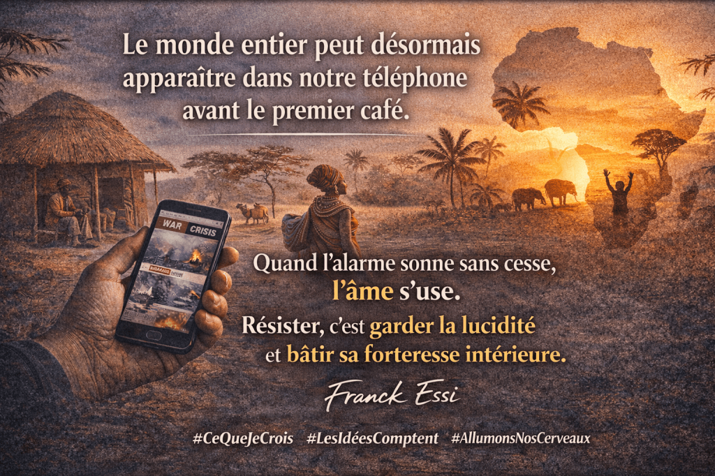 Les générations qui nous ont précédés vivaient aussi dans des époques tourmentées — guerres mondiales, colonisation, indépendances arrachées dans le sang. Mais leur douleur avait une géographie. Elle avait des frontières. Elle leur laissait des espaces de respiration, des zones d’ombre où la vie ordinaire pouvait continuer à exister. Aujourd’hui, il n’y a plus de zones d’ombre. La souffrance du monde entier débarque dans notre chambre à coucher, entre le réveil et le premier café, sans frapper à la porte.