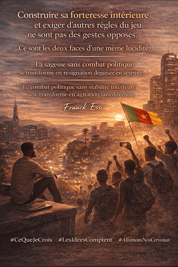 Construire sa forteresse intérieure et exiger des règles du jeu différentes ne sont pas deux gestes opposés. Ce sont les deux faces d’une même lucidité. L’une sans l’autre est incomplète. La sagesse sans le combat politique devient de la résignation habillée en sérénité. Le combat politique sans la stabilité intérieure devient de l’agitation sans direction.