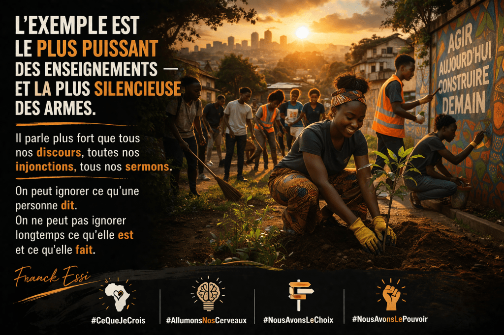 L’exemple est le plus puissant des enseignements — et la plus silencieuse des armes. Il parle plus fort que tous nos discours, toutes nos injonctions, tous nos sermons. On peut ignorer ce qu’une personne dit. On ne peut pas ignorer longtemps ce qu’elle est et ce qu’elle fait.