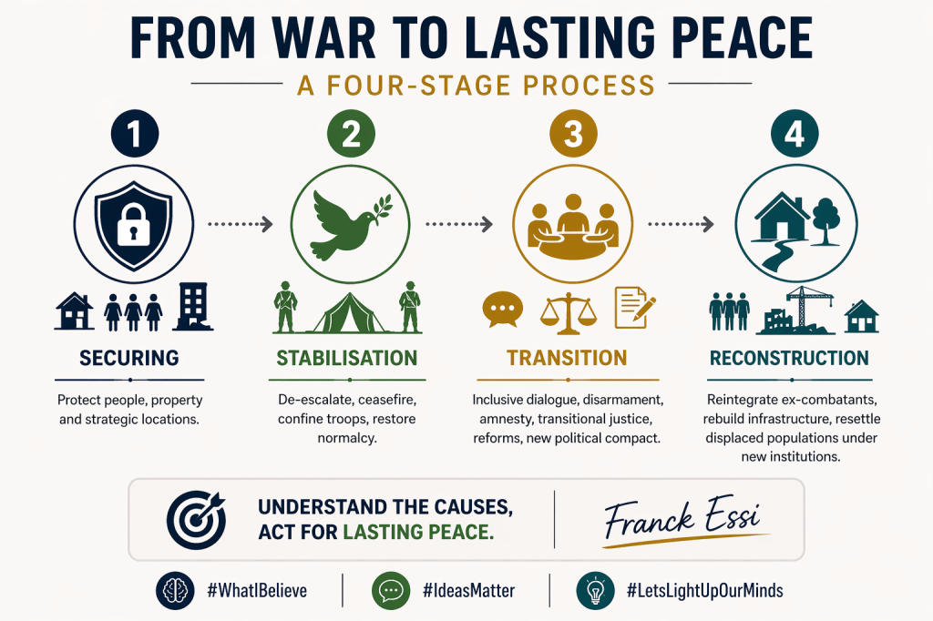 ✅ Stabilisation: the full range of processes and mechanisms leading to de-escalation and a return to normality — negotiating a ceasefire, confining troops to designated areas, and restoring a degree of normalcy to the lives of affected populations.