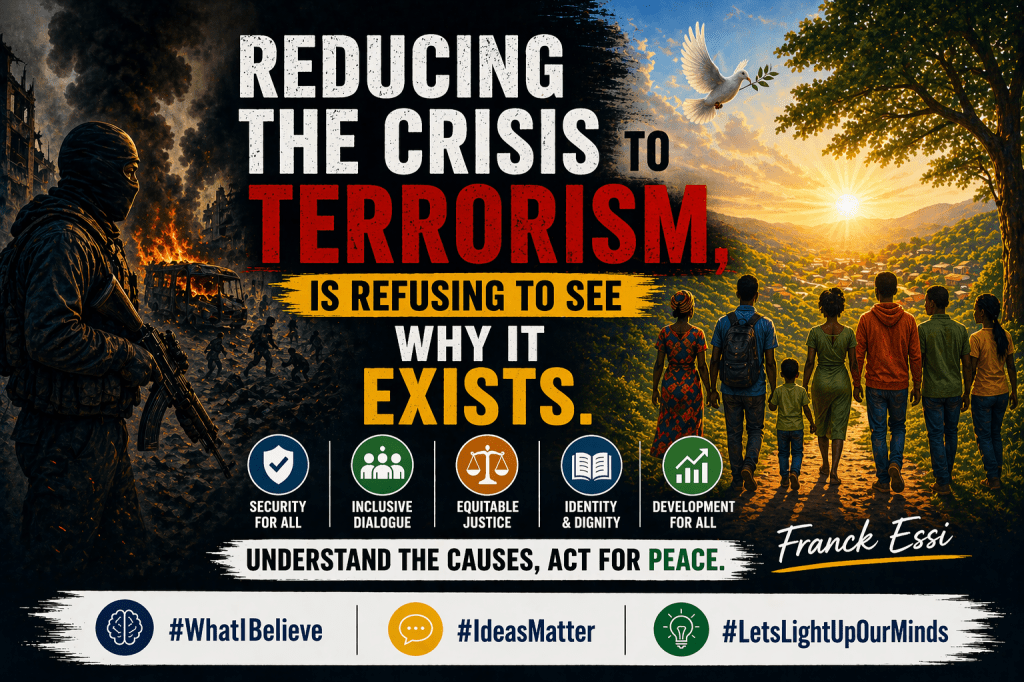To insist that the priority is « End Ambazonia Terrorism » is to reduce a deep-rooted crisis to its consequences, to a subset of its actors, and above all to its security dimension alone. It is to stare exclusively at the hole into which we have fallen. It is also to forget that for the populations caught in this war, the abuses of both sides must be examined and purged.